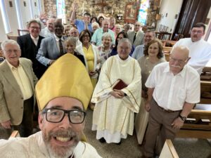 Visitation at Church of the Mediator in Meridian. At the service I preach, celebrate and confirm 14. During the liturgy they presented me with a beautiful chasuble made by parishioners. We celebrate the new members of the church and their stewardship drive with a banquet. It was a wonderful morning and afternoon!